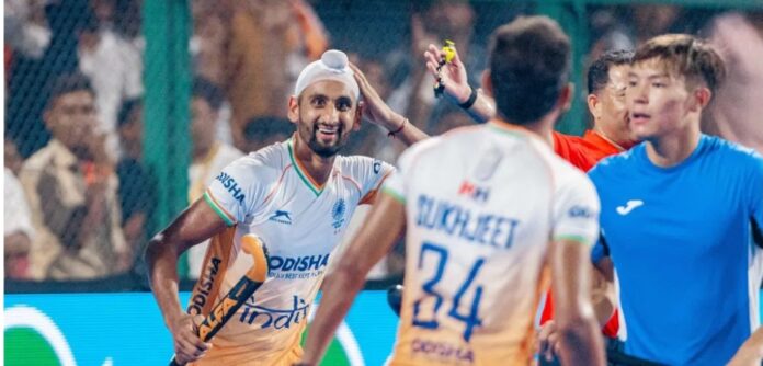 Rajgir, 1 September: It was goals galore for the Indian Men’s Hockey Team, in their final Pool A game at the Men’s Asia Cup Rajgir Bihar 2025. India was playing against Kazakhstan and won by a scoreline of 15-0, with as many as three players scoring a hat-trick at the Rajgir Hockey Stadium, in Rajgir, Bihar. For India, Abhishek (5’, 8’, 20’, 59’), Sukhjeet Singh (15’, 32’, 38’), and Jugraj Singh (24’, 31’, 47’) scored the hat-tricks, whilst Captain Harmanpreet Singh (26’), Amit Rohidas (29’), Sanjay (54’), Dilpreet Singh (55’) also got on the scoresheet. India, who had already qualified for the Super 4s, finished the league stage at the top of the points table in Pool A with nine points from three games.